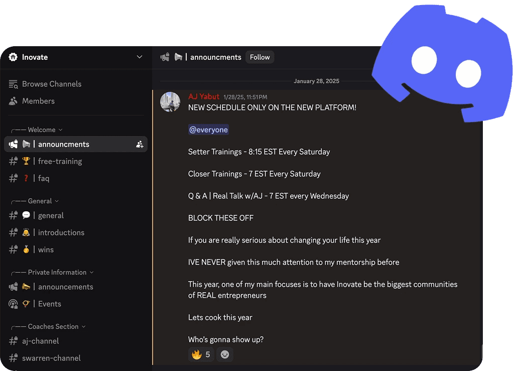 Inovate Discord Community with LIVE Setter & Closer Training